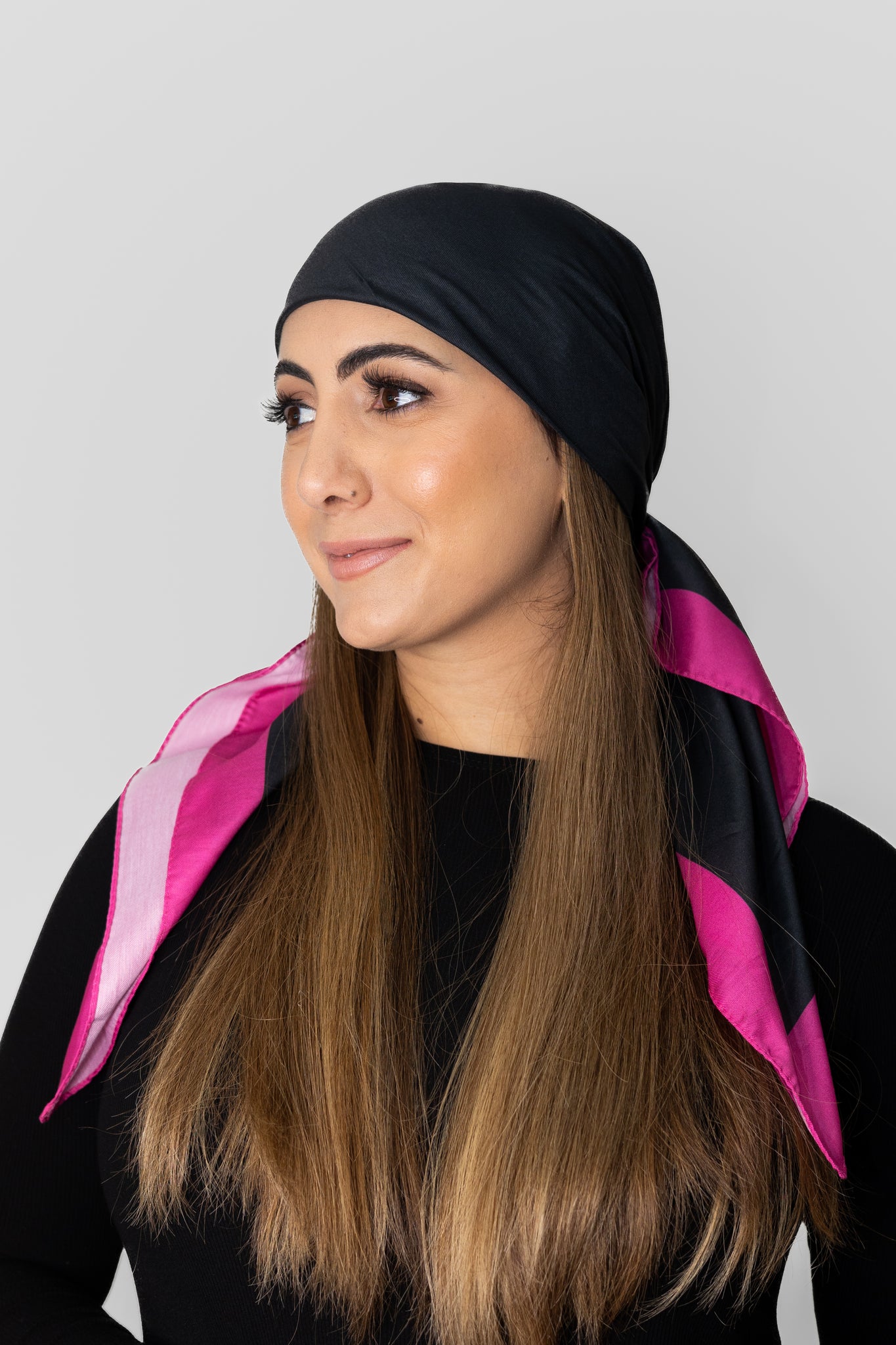 Black With Hot Pink Border Head Scarf