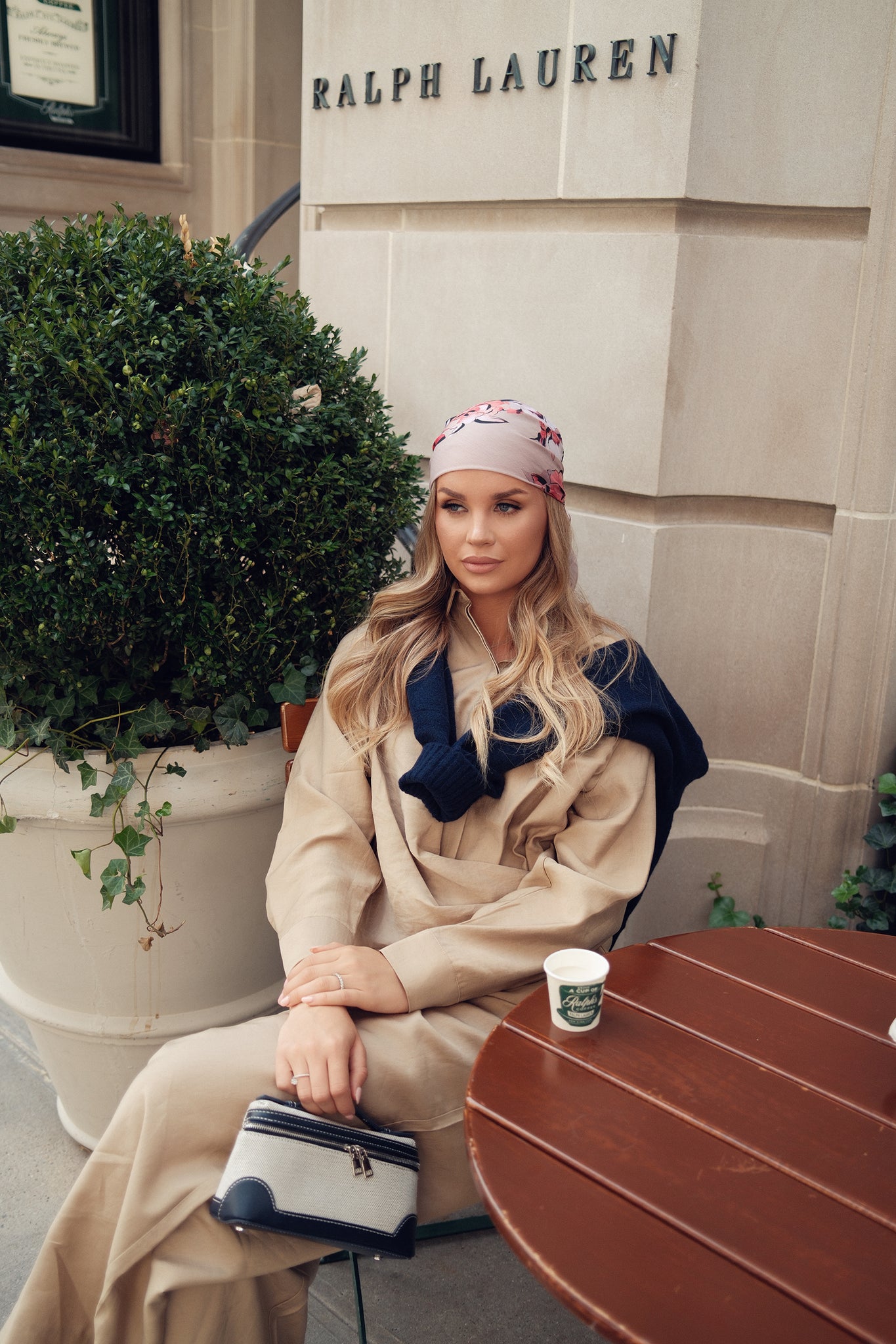 Our Triangle is pre-sewn from a square scarf into a permanent triangle shape no folding required. Its perfect for a quick, clean wrap and lays flat around the head.