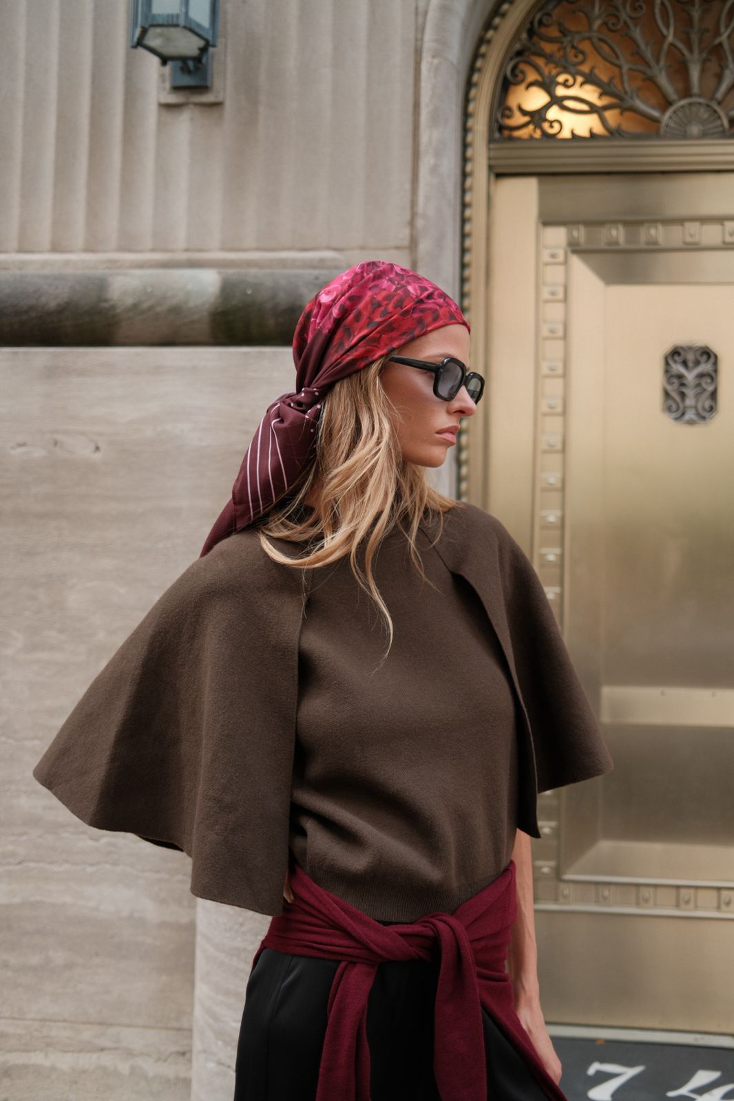 A classic 100cm x 100cm scarf that can be wrapped, folded, and styled in endless ways. This versatile cut is a timeless staple that works for any occasion or personal style.