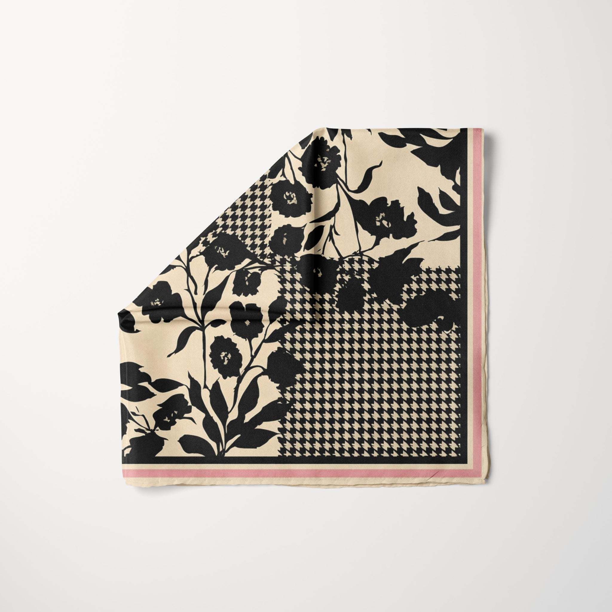 A black-and-cream classic, Checked Out pairs bold florals with crisp houndstooth for a clean, elevated look. Polished, timeless, and easy to style on repeat.