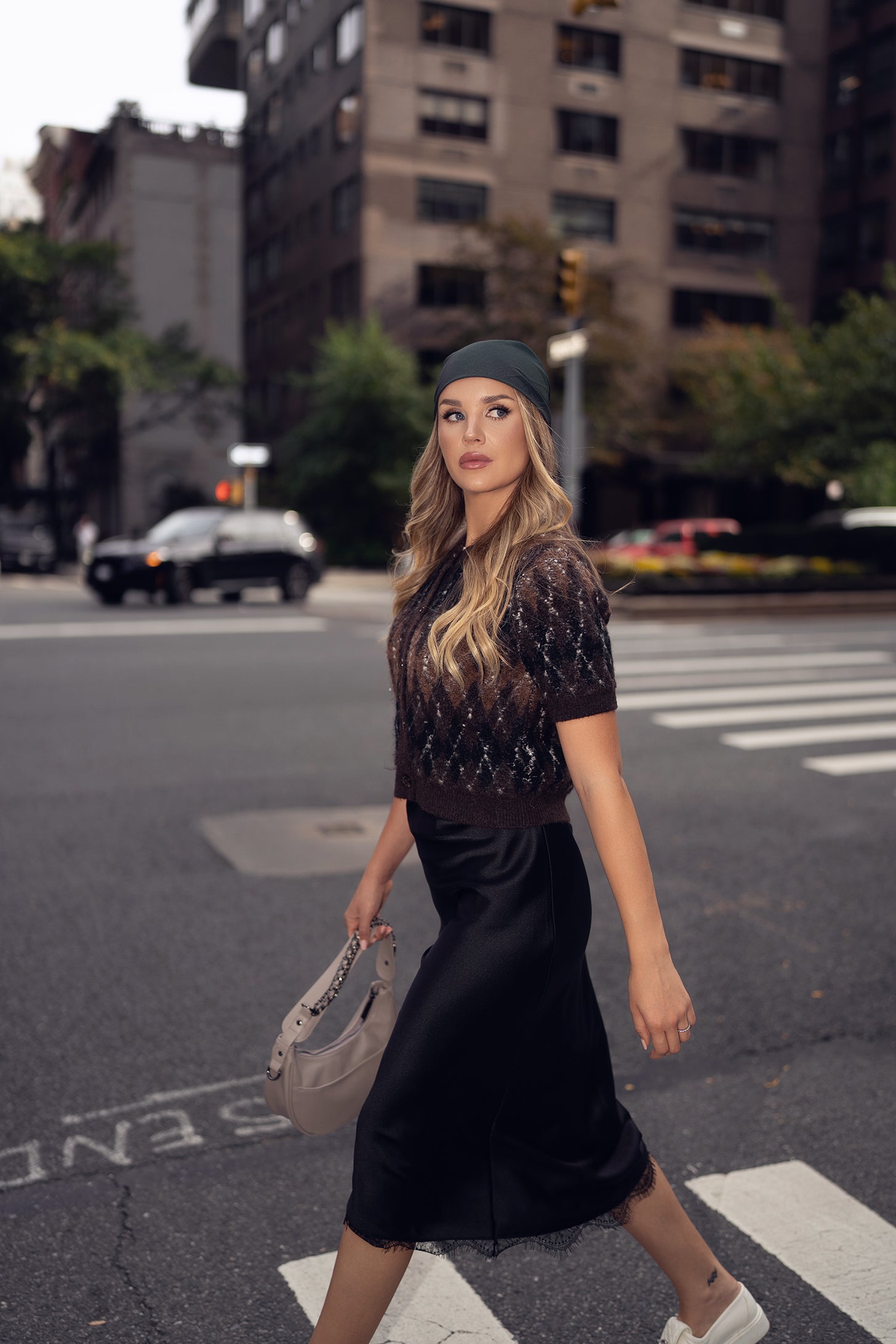 Our Triangle is pre-sewn from a square scarf into a permanent triangle shape no folding required. Its perfect for a quick, clean wrap and lays flat around the head.