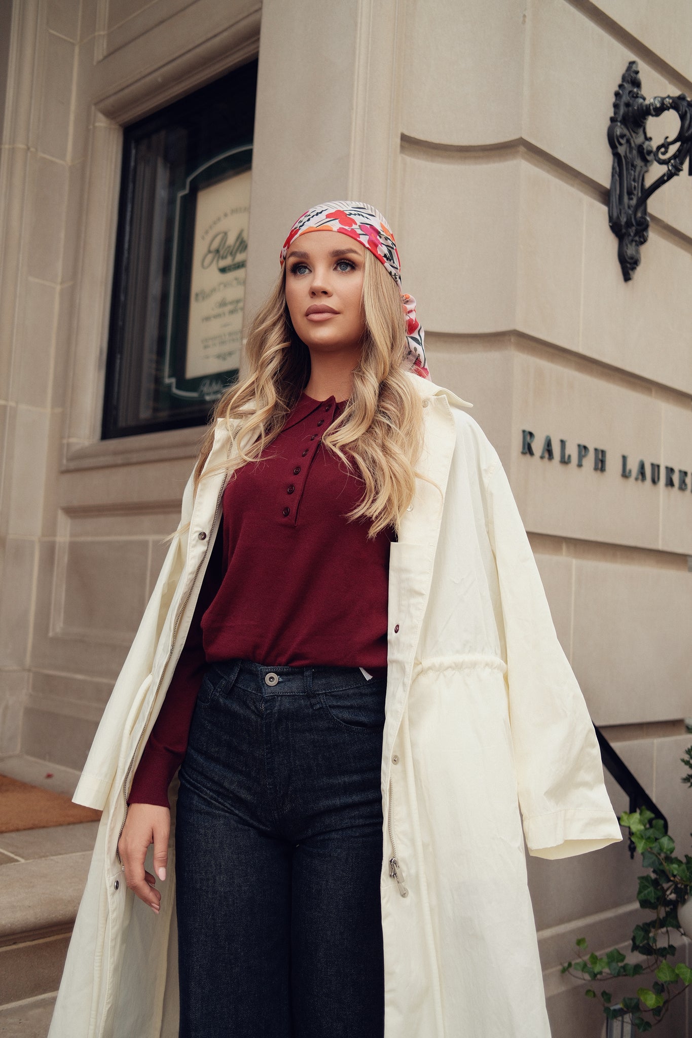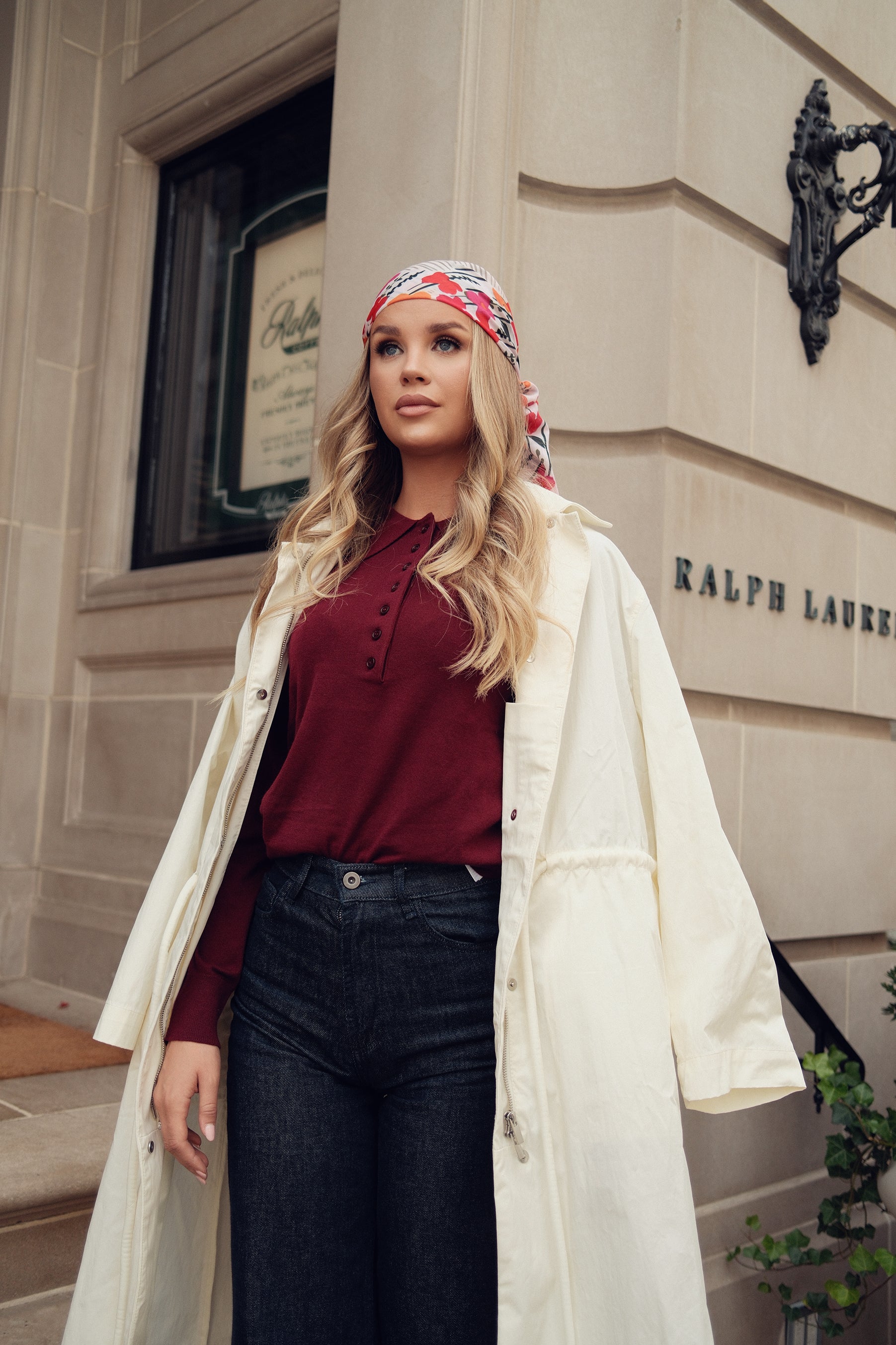 Our Triangle is pre-sewn from a square scarf into a permanent triangle shape no folding required. Its perfect for a quick, clean wrap and lays flat around the head.